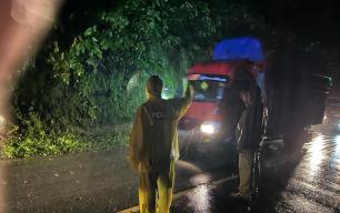 Anggota Polsek Muara Sahung Patroli Pantau Banjir dan Tanah Longsor Akibat Hujan Deras