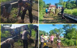 Dukung Program Kelurhan, Bhabinkamtibmas Polsek Ratu Samban Gotong Royong Bersihkan Selokan Bersama Warga