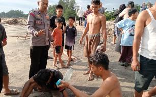 Personel Polsek Kaur Selatan Berikan Petolongan Warga yang Hanyut di Pantai Sambat