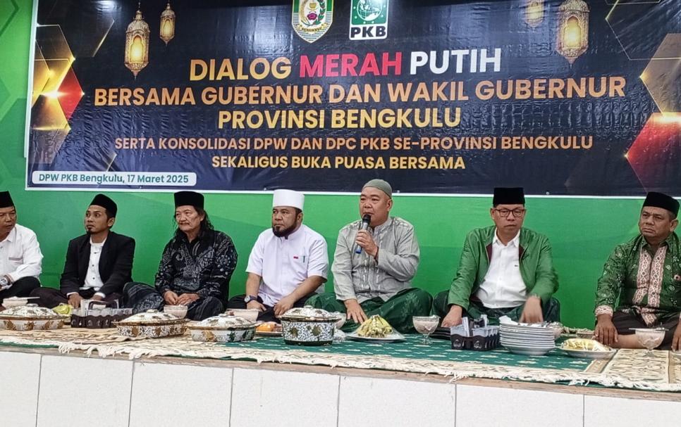 Bengkulu, Progresiflines.com – Dewan Pengurus Wilayah (DPW) Partai Kebangkitan Bangsa (PKB) Provinsi Bengkulu menggelar Dialog Merah Putih Bersama Gubernur dan Wakil Gubernur Provinsi Bengkulu serta Konsolidasi DPW dan DPC PKB Se – Provinsi Bengkulu, Sekaligus Buka Bersama. Kegiatan ini digelar di Gedung DPW PKB Provinsi Bengkulu, Senin (17/3/2025).