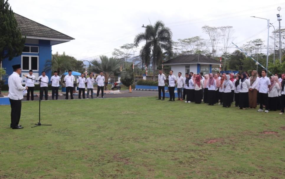 Progresiflines.com - Pasca hari libur nasional dan cuti bersama perayaan Hari Raya Natal Tahun 2023, Sekretaris Daerah Kabupaten Lebong, Mustarani Abidin memimpin apel perdana yang diikuti Aparatur Sipil Negara (ASN) dan Tenaga Harian Lepas Terdaftar (THLT) jajaran Sekretariat Daerah (Setda) Pemkab Lebong di halaman Kantor Bupati Lebong, Rabu 27/12/2023.