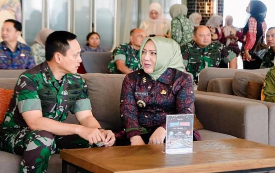 Progresiflines.com - Bupati Musi Rawas, Hj Ratna Machmud sambut kunjungan Panglima Komando Daerah Militer (Pangdam) II/Sriwijaya, Mayjen TNI Ujang Darwis, dalam kegiatan ramah tamah di Hotel Grand Zuri Lubuklinggau, Jumat (25/07/2025).