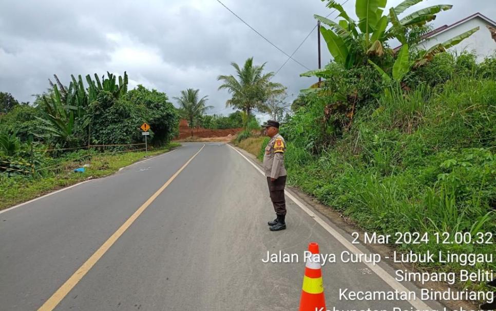 Rejang Lebong - Kapolsek PU. Tanding, IPTU Hengky Noprianto, S.H., M.H., beserta personil Polsek melakukan pengamanan di titik rawan di jalur lintas Curup-Lubuk Linggau pada hari Sabtu (02/03/2024). Kegiatan ini bertujuan untuk memberikan perlindungan dan keamanan bagi para pengguna jalan, khususnya mereka yang melintasi rute tersebut.