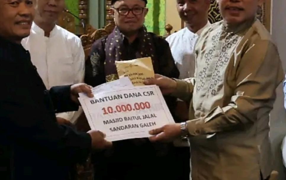 Wako Ahmadi juga menyerahkan Dana Bantuan dari Pemerintah Kota Sungai Penuh melalui dana CSR bank Jambi sejumlah Rp.10.000.000,- dan dana pribadi beliau sebesar Rp.1.000.000,- kepada pengurus Masjid Baitul Jalal Desa Sandaran Galeh Kecamatan Kumun Debai, dengan harapan dapat digunakan untuk pembangunan fisik atau pun memfasilitasi Masjid untuk dapat menambah manfaat di lingkungan sekitar. (Stn).