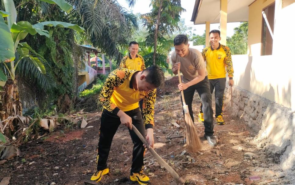 Terlihat para Anggota Polsek Ketahun bersama-sama melakukan aktivitas seperti mengecat tembok, membabat rumput-rumput yang tumbuh secara liar dan menyapu membersihkan sampah-sampah yang ada disekitar lingkungan Mapolsek.