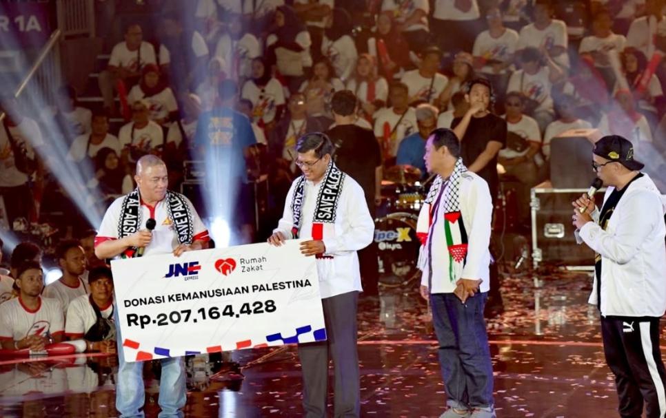 Pada saat momen perayaan hari ulang tahun JNE yang ke 33 tahun pada 26/11/24 lalu, Ksatria dan Srikandi JNE juga mengumpulkan donasi Kemanusiaan untuk Palestina. Saat acara berlangsung, donasi tersebut terkumpul sebanyak Rp. 207.164.428 diserahkan langsung secara simbolis oleh Mohamad Feriadi Soeprapto mewakili seluruh karyawan/ti JNE dan diterima secara langsung oleh Irvan Nugraha selaku CEO Rumah Zakat Indonesia untuk disalurkan kepada saudara kita di Palestina.