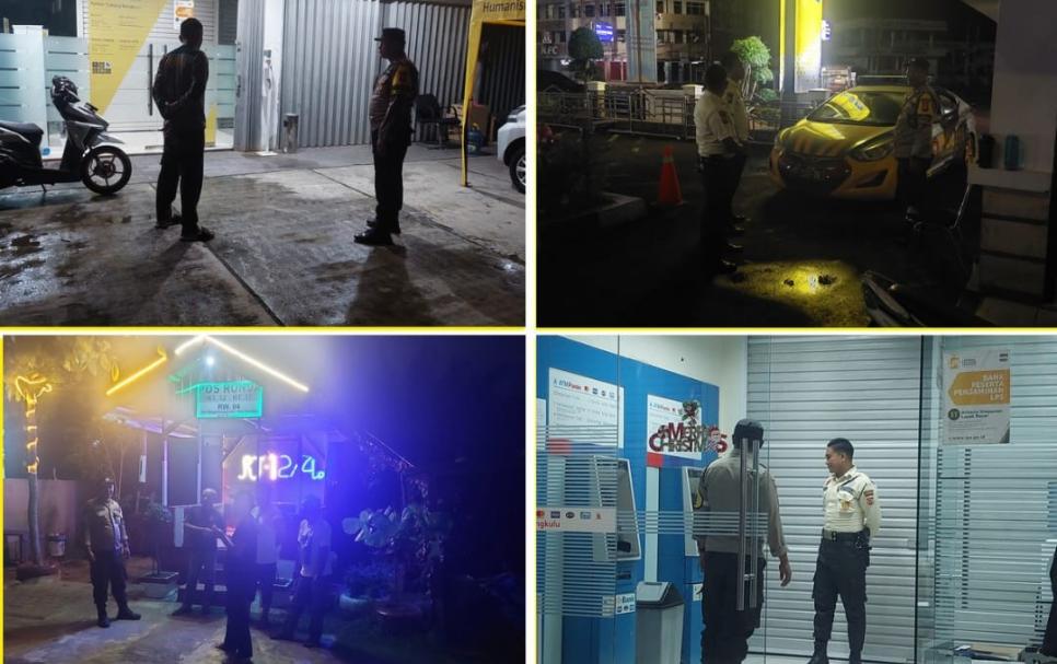 Bengkulu - Personel Polsek Ratu Samban Polresta Bengkulu Polda Bengkulu, melaksanakan patroli keliling malam hari di seputran wilayah hukum Polsek Ratu Samban Kota Bengkulu, Sabtu (10/02/2024) malam.