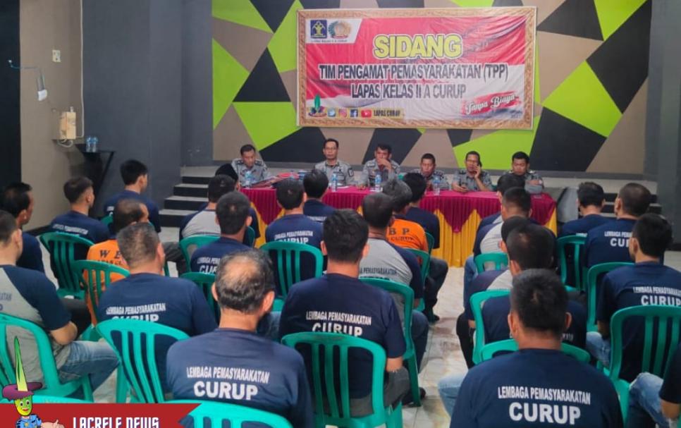 Progresiflines.com - Dalam rangka pelaksanaan program integrasi dan program pembinaan terhadap Warga binaan Lapas, Tim TPP Lapas Klas II A curup melaksanakan sidang TPP yang bertempat di Aula Lapas yang membahas tentang usulan integrasi Cuti Bersyarat dan Pembebasan Bersyarat WBP Lapas Klas II A Curup. Adapun WBP yang mengikuti sidang TPP berjumlah 28 orang yang terdiri dari 15 orang usulan integrasi Pembebasan Bersyarat dan 13 orang usulan Cuti Bersyarat, Kamis (25/04).